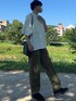 ゆーしーのスラックス「コットンレーヨンツイル ドレープ ワイドスラックス/セットアップ対応」を使ったコーディネート