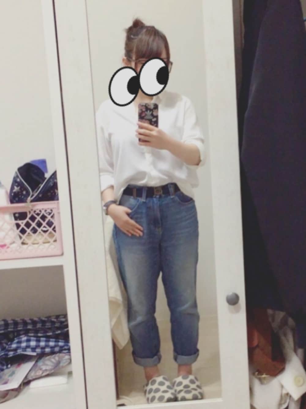 お友達のお誕生日に飲み会します🤗🤗 (未成年なのでお茶です笑) 楽しみ〜🌸🌸🌸 ・ ・ なんか白シャツって上手くきんと、めっちゃデブに見えるよね、、😂😂
