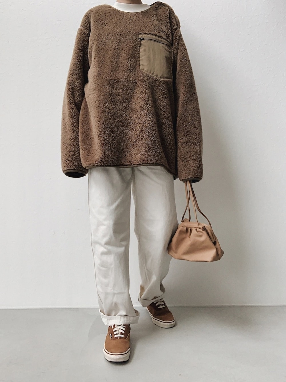 上下uniqlo Uで白⚪️ その他、茶色🟤 まだまだあったか素材が ちょうど良い。 気持ちは春なのに〜外寒い。 バッグは新作です👝 𓍲outer𓇠uniqloU 𓍲tops𓇠uniqloU 𓍲bottoms𓇠uniqloU 𓍲bag𓇠INN 𓍲shoes𓇠vans