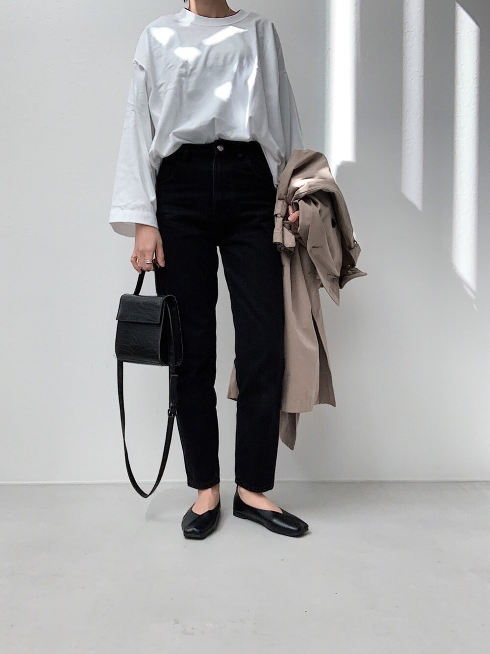 春トレンチでスタンダードな モノトーンコーデ⚪️ 𓍲outer𓇠zara 𓍲longT𓇠uniqlo 𓍲bottoms𓇠zara 𓍲bag𓇠INN 𓍲shoes𓇠INN