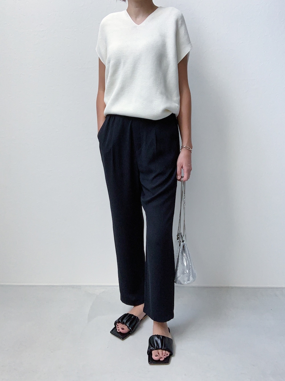 白黒ネイビー。 秋まで履ける新作サンダル。 ギャザー感が良きです⚫️ 𓍲tops𓇠uniqlo 𓍲bottom𓇠niko and... 𓍲bracelet𓇠todayful 𓍲bag𓇠INN 𓍲shoes𓇠INN