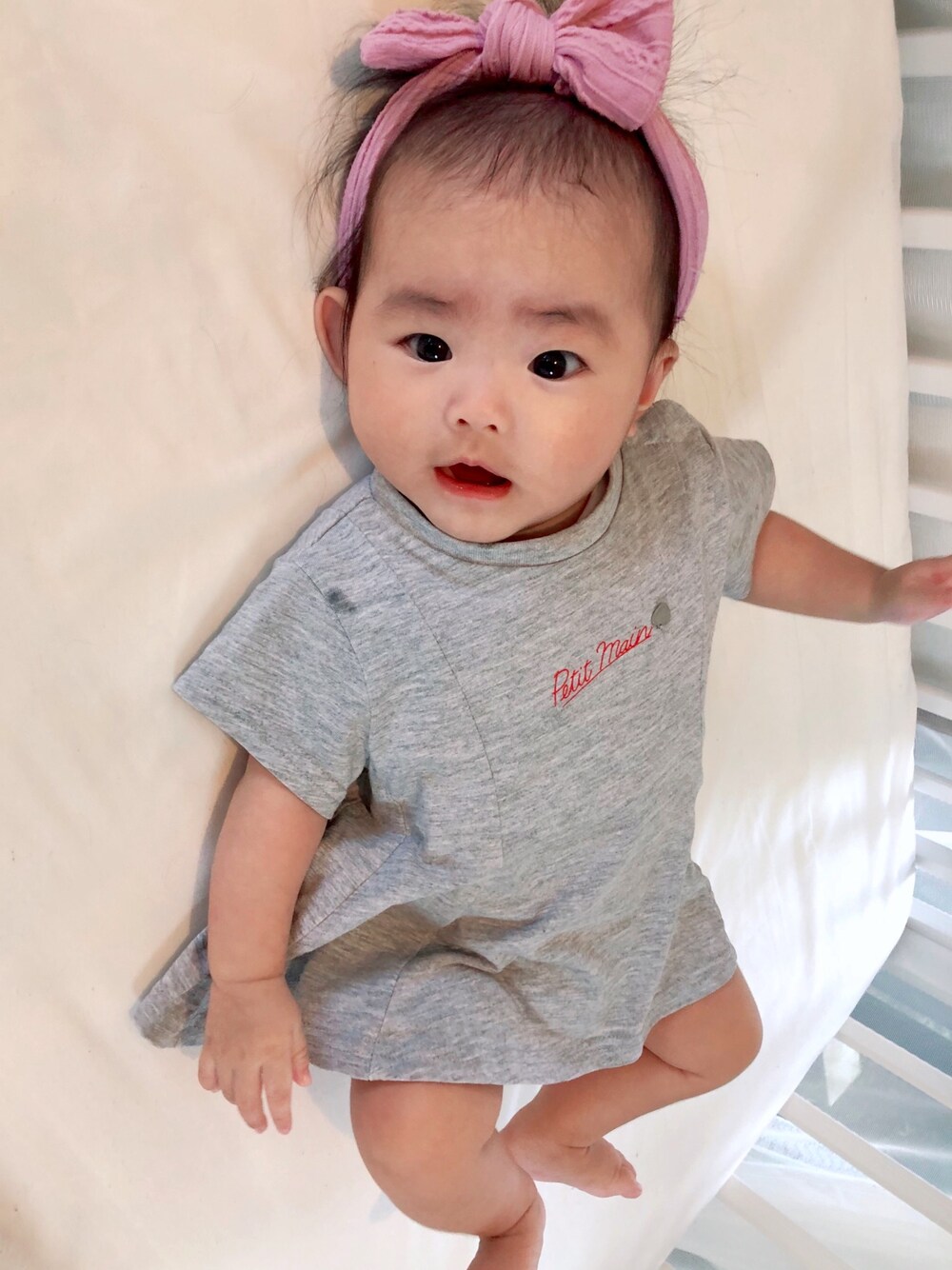 来年用の80cmのTシャツをワンピースとして着てます👗