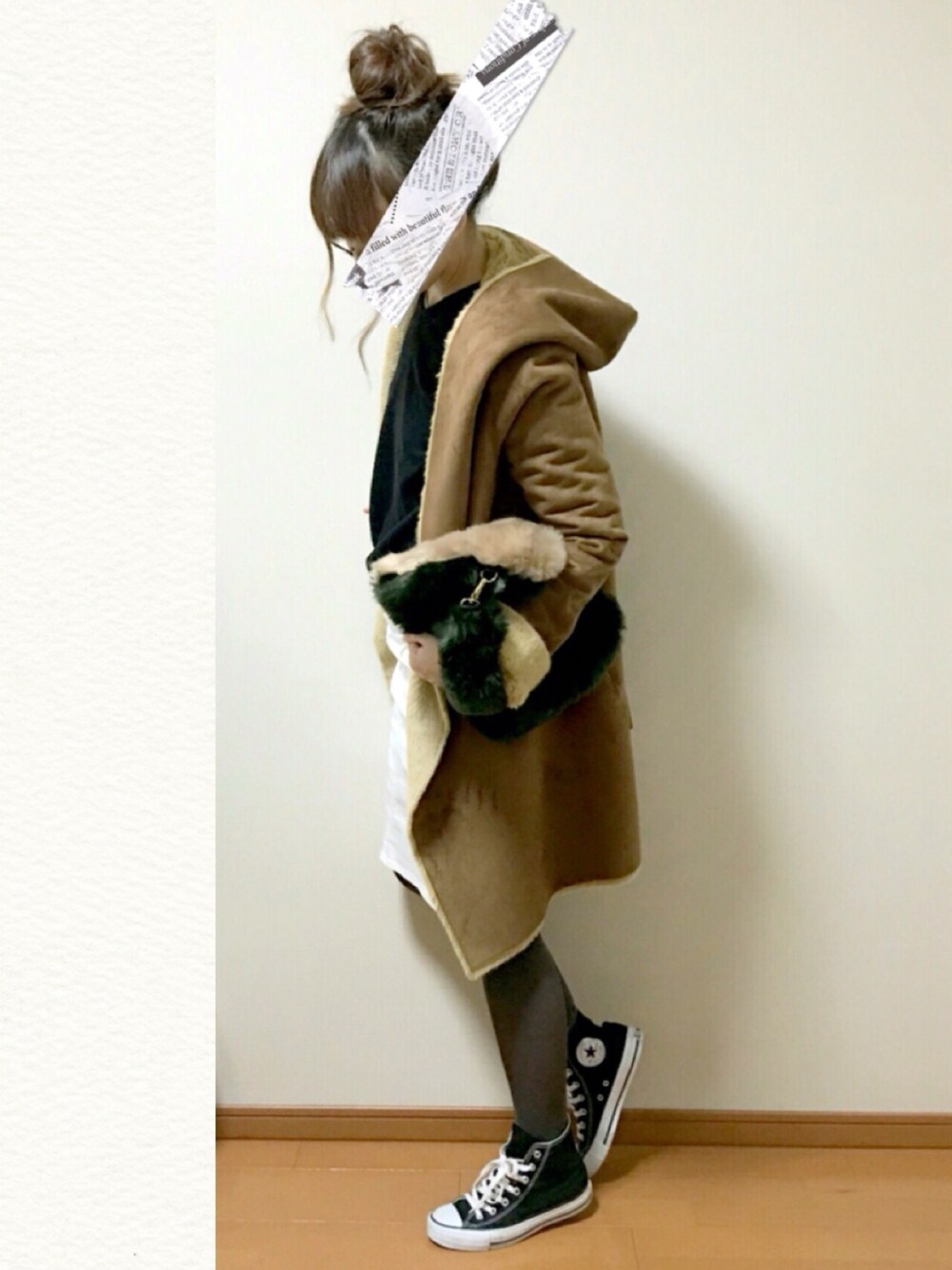 ちーゆーのムートンコート「ROSSO フェイクムートンロングコート」を使ったコーディネート