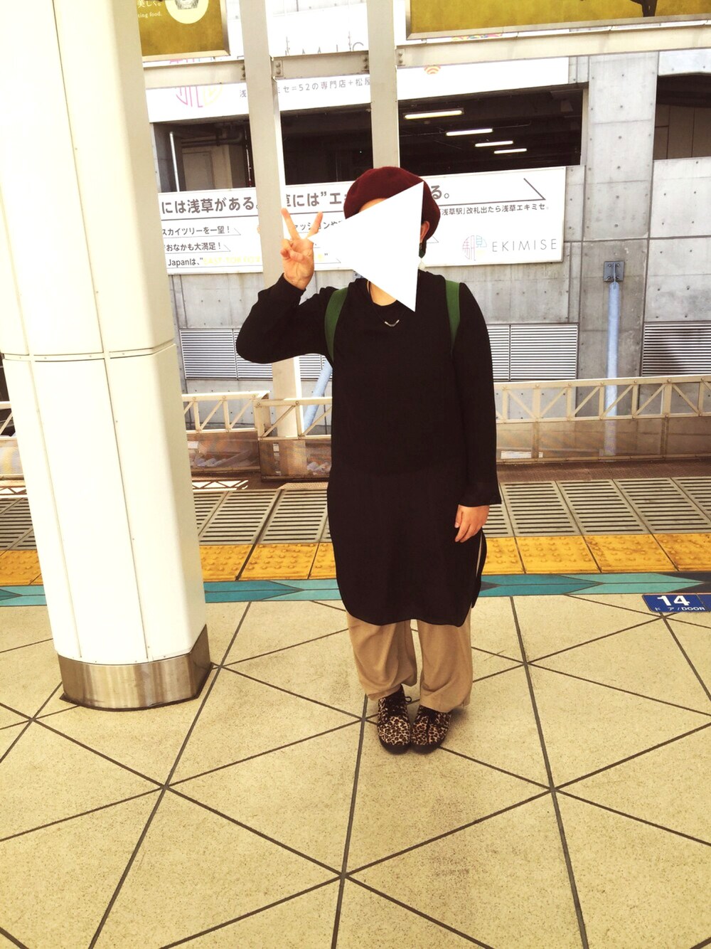ブラック系のワンピースを着用したレディースの春コーディネートの1枚目の写真