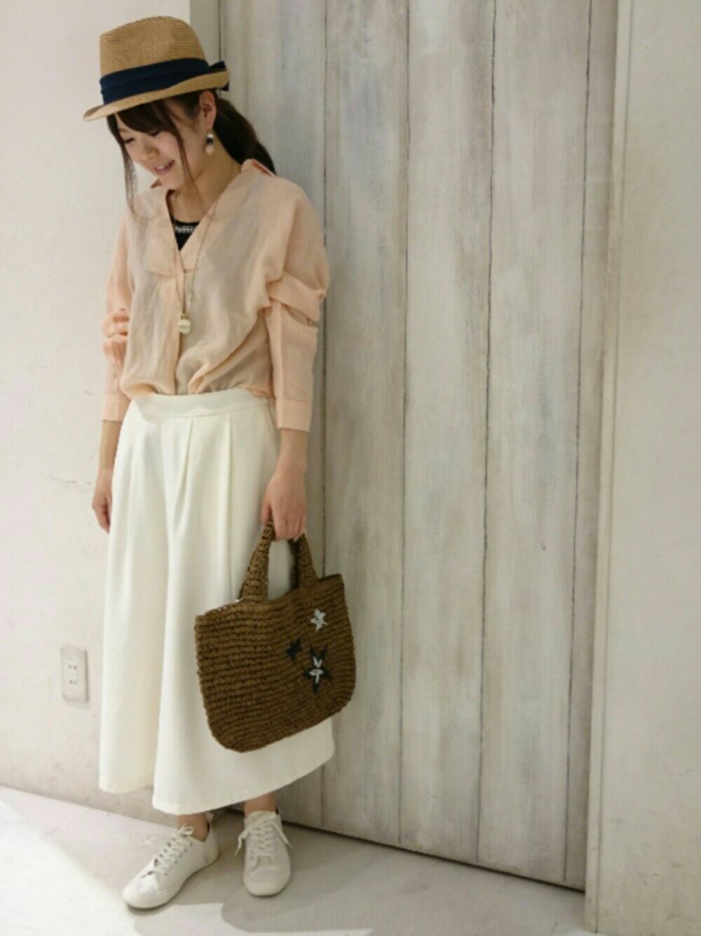 いつもいいね&saveありがとうございます‼ 関東も桜が咲き、暖かい日が増えてきました‼ お花見にもピッタリな、ピンク×白のお出かけコーディネートです。 ピンク×白で甘くなりすぎないように、小物はブラウン系でまとめてみました。 もう少し暖かくなったら、サンダルに変えてもいいですね‼