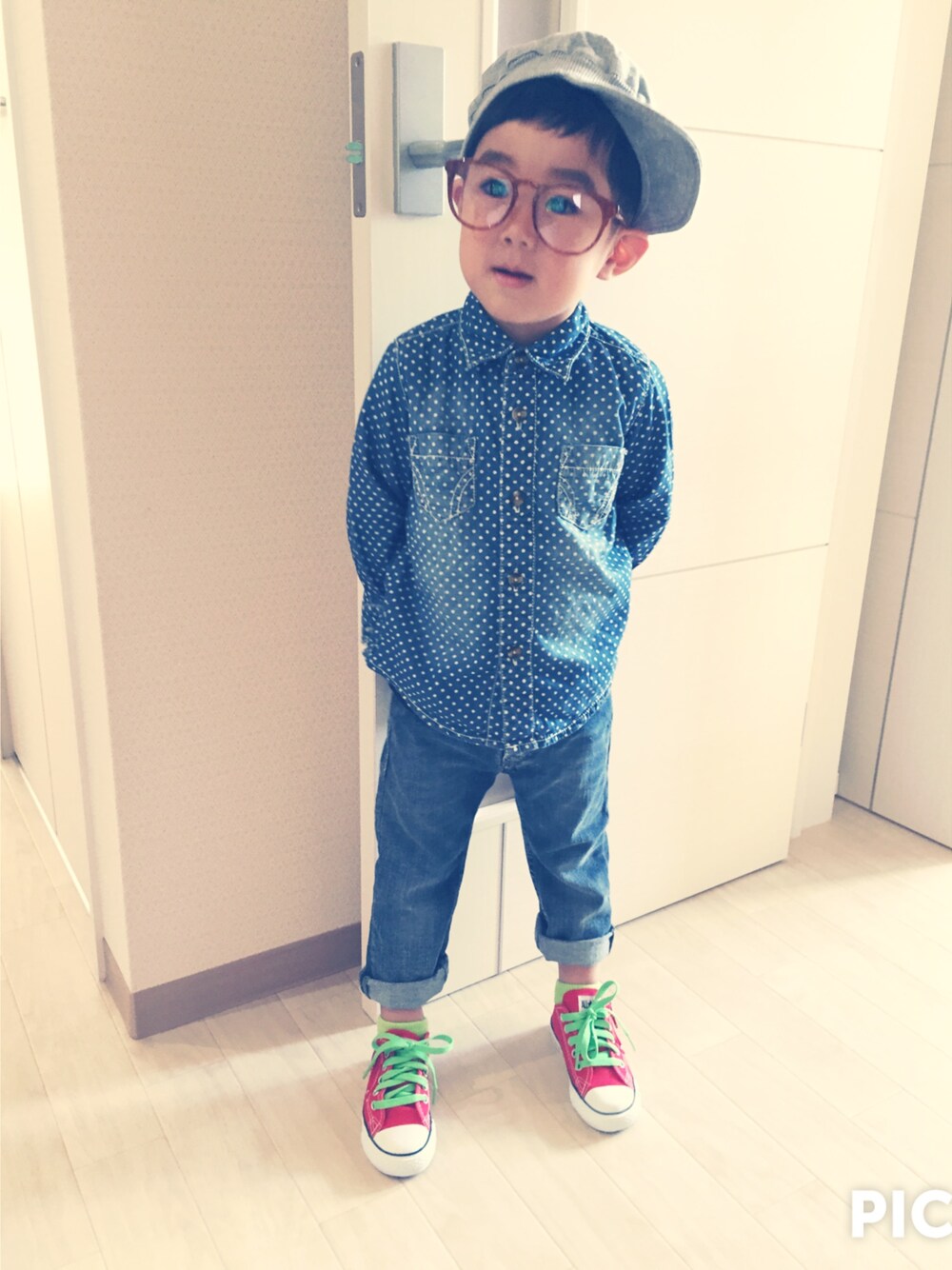 トップス:ノーブランド 帽子:西松屋 スニーカー:オールスター