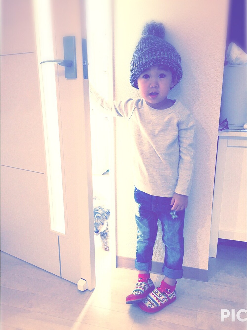 デニム:DADDY OH DADDY 靴:スキッポン ニット帽:西松屋