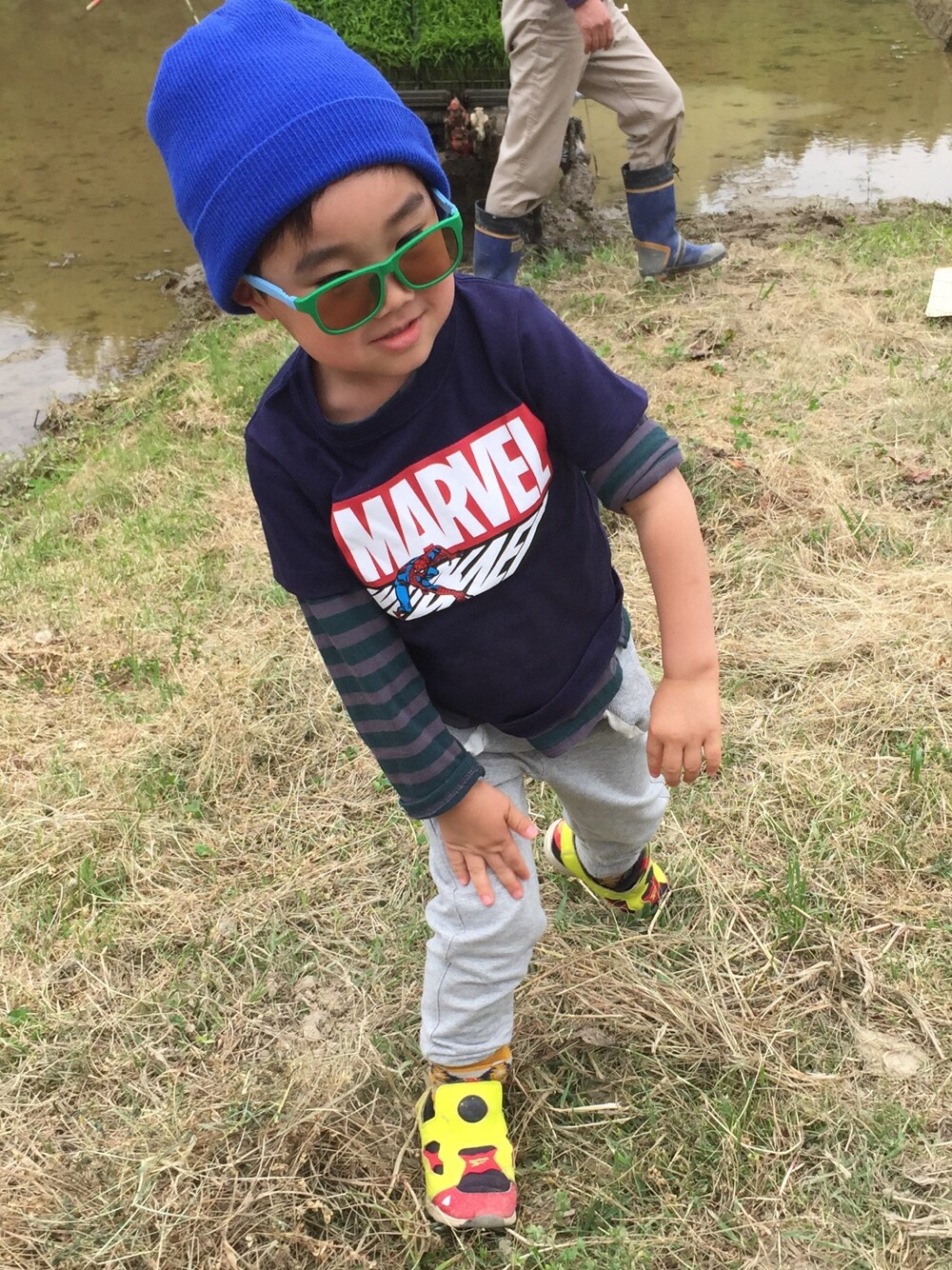 田植えのお手伝い。 お手伝いとは思えないほどチャラい。