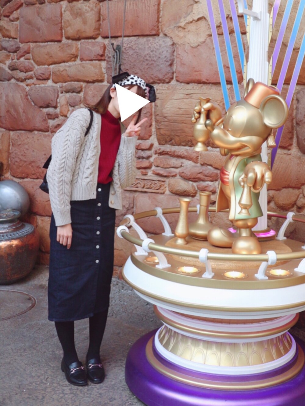 どんだけディズニー行ってんねん、自分✋🏻💥 真っ赤なニットは差し色に❤️ 見た目からもあったかくなれるゆるニットは今年大活躍! GUのロングタイトスカートはどんなニットにも合うから本当に優秀✨ ローファーは足を華奢に見せてくれる気がするのでデートにはいいかな。