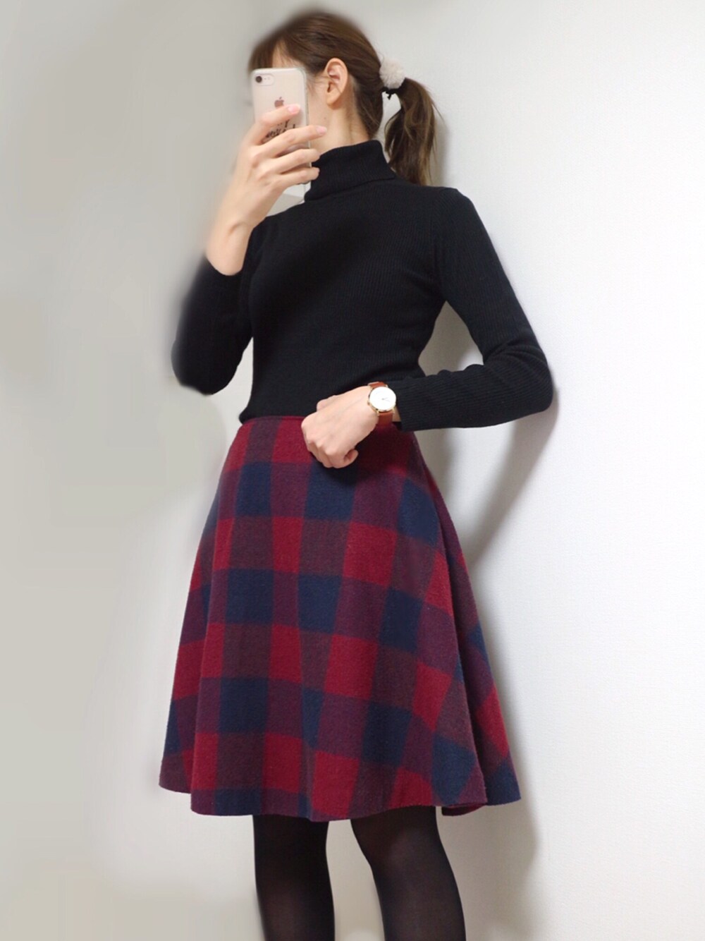 シンプルだけど大人可愛く! 赤チェックでクリスマスデートにも❤️