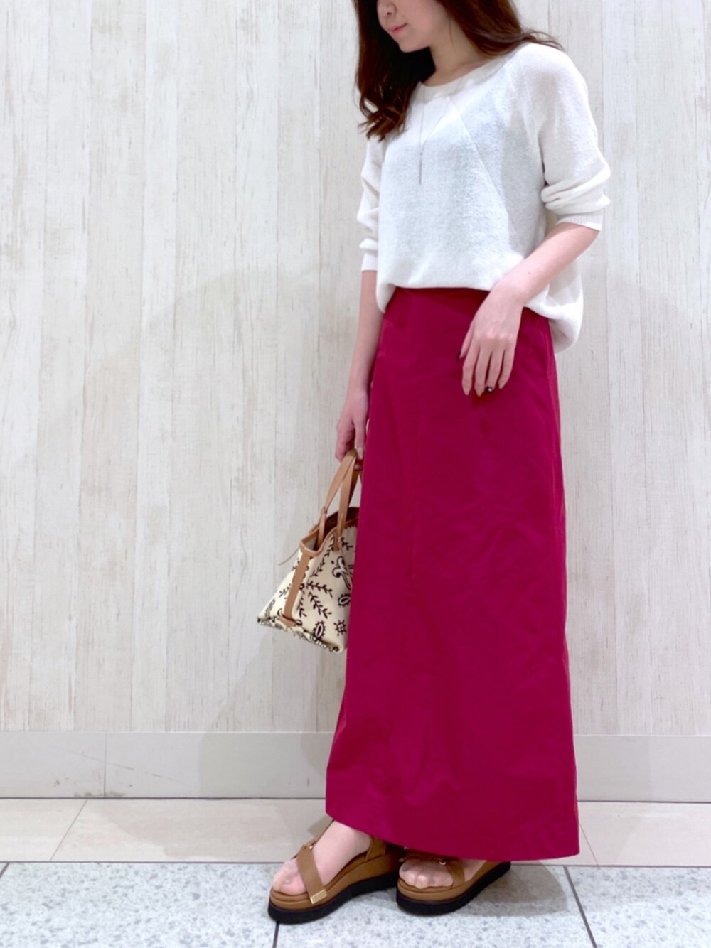 脚長効果抜群のタイトスカートは、履くだけでスタイルUPできる優秀アイテムです⭐︎ 透け感のあるニットで、春らしい装いがおすすめです‼︎