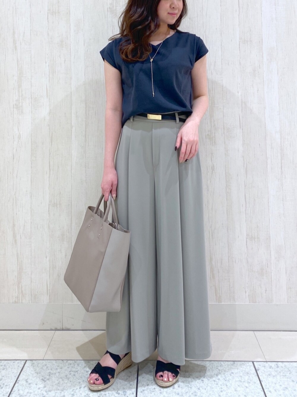 リヴドロワ定番の美シルエットベルト付きワイドパンツにカットソー合わせで、初夏にぴったりなコーデです⭐︎ カットソーは、着心地の良さ、シルエットの美しさ抜群で、色違い持ちがオススメです‼︎