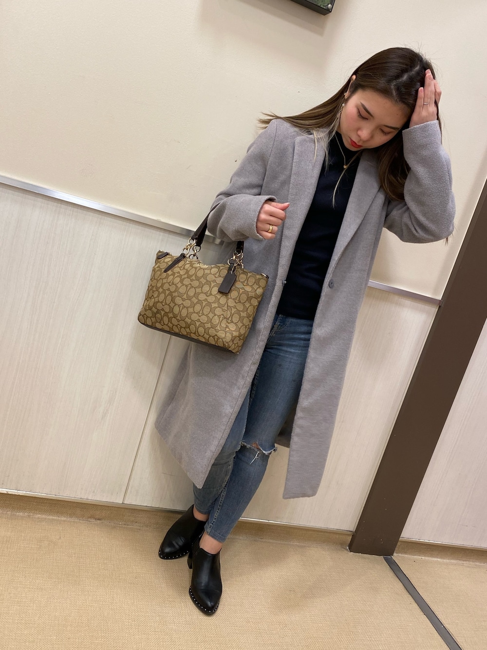 . この間のコーデ⭐ . 落ち着いた色味で合したトーンコーデ🖤 . 丸首に短めのネックレスが可愛いから この組み合せばっかりしちゃう😂 .