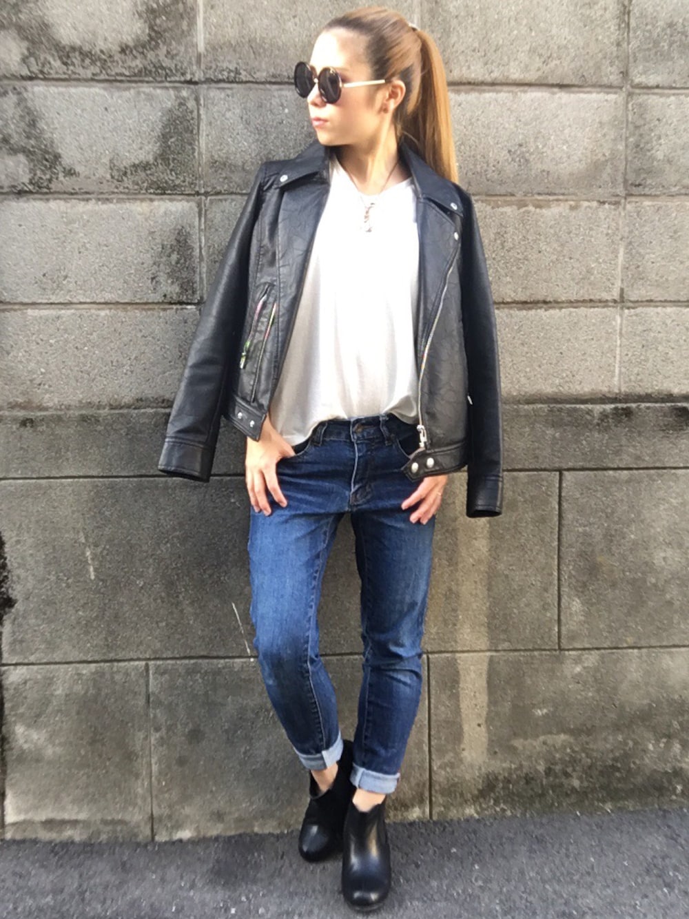 こんばんわ!🌃 Ӱuuriです❁٩(„❛ ֊ ❛„)❁ 今日は風が強くて肌寒いので ライダース着用💟 かっこよく決めるのに最適だからスキ💋 オールバックでダレノガレ風に😝 とか言ってみます😚 ダレノガレみたいにならないのが辛い…😭 今日はクールに 白のトップスにデニムにチョイインで ライダース羽織って、サイドゴアブーツでしめました😉 いつも見て頂きありがとうございます♥ ♡、save、フォローお待ちしております💟