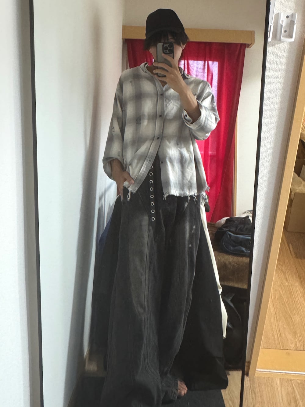 utaのシャツ/ブラウス「【CLEL】Vintage Design Damage Check Shirt/ヴィンテージデザイン ダメージチェックシャツ」を使ったコーディネート