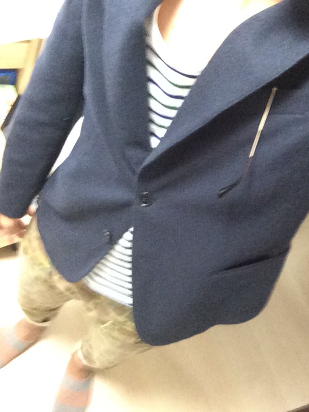 今日はおでかけー 雨降って少し寒いので ジャケットコーデ(^^) キッチリした感じを 迷彩で崩してみましたー