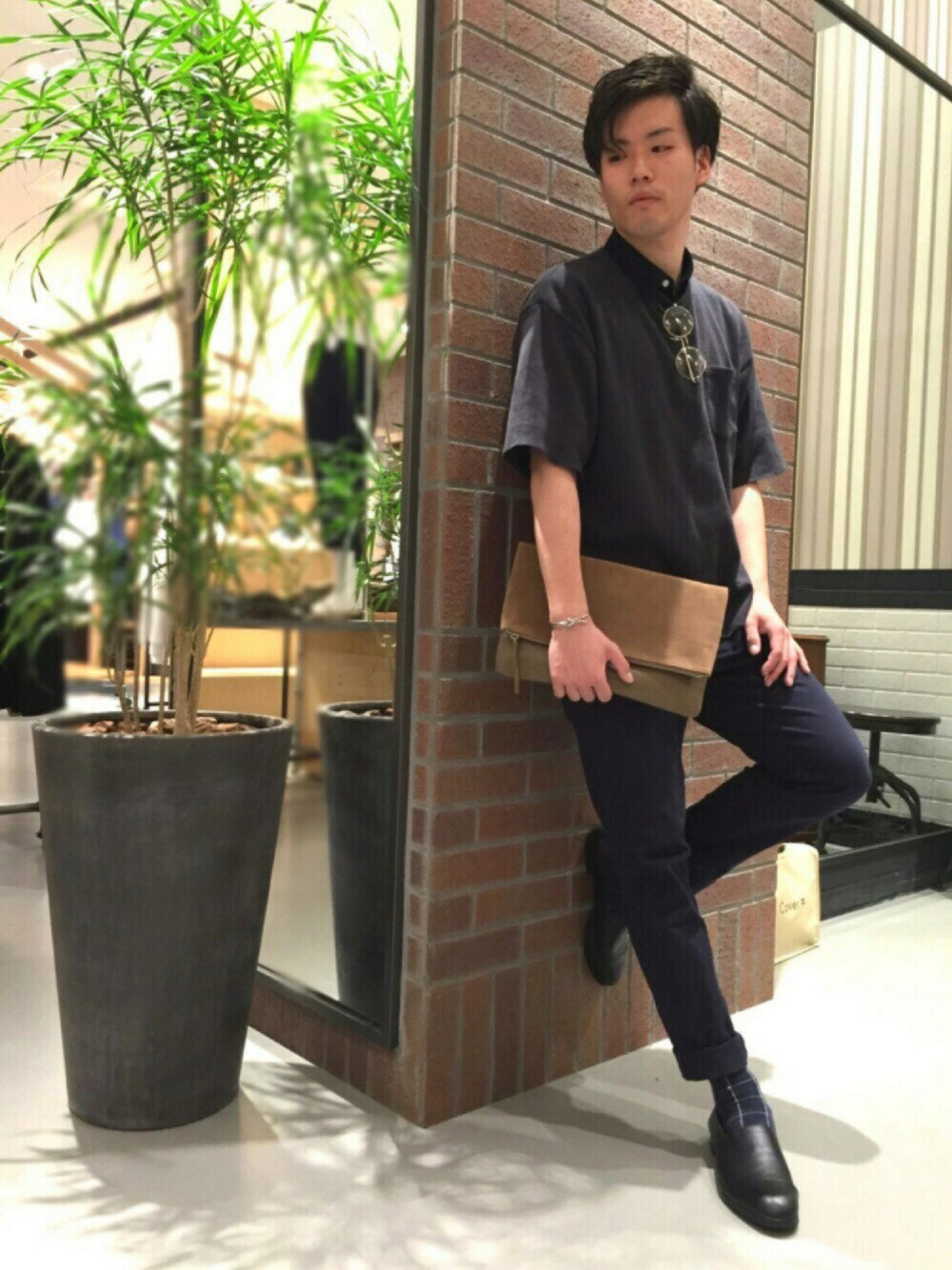 こんにちは!!!! 前回はたくさんの人に見ていただきまして、いいね、セーブやコメントなどいただき、ありがとうございました。 使い方がよくわからず、とりあえずフォローしまくってたんですけど、なんかタイムラインくちゃくちゃになってて、見にくかったし、オシャレ!!って思う人が埋もれちゃってて個人的にびみょくなったので、フォローした後一旦フォロー解除したりなんかもしてしました💦💦💦フォロバしてくださった方々も多く居たのに、ほんとすみません。。。 コメントもたくさんいただいたんですけど、フォローありがとうございました系のコメント多くて しゃらくせええええええええ!!!! っていう心の叫びがつい溢れて、ほとぼりが冷めるまでコメント機能をオフにしてた次第であります。ワガママで申し訳ない。。。 だがしかし 心温まるコメントをくださった方々も多かったので、前回のコーデまでは自身が引き起こした事態ですゆえに返信しないのですが、今回からしっかりとお返事書かせていただきたいと思います(^ ^) 自分リムられたんですけど!!?!?ああん!?!?!??なめてんのか!!!!! ってゆー方や しゃーねぇ絡んでやるか。 って思う方はこちらのコーディネートの方にコメントくださいましm(._.)m リムられたんですけどおおおおおっ って方にはお住いの方角に向けて、ここ愛知からしっかりと土下座しますので、遠慮なくお申し付けください。 そして再びフォローさせてください(´・ω・`) 前置き長くなりましたが 今日は、「夏に図書館に行く」というテーマでコーディネートしました。 夏は暑いですが、図書館の中は冷房でひんやり。というかむしろ寒い。クーラーの下はけっこうキツい。長時間勉強してると、寒くてお腹いたくなる……。 だったらデニムシャツの上からTシャツ重ねてきちゃえばいいじゃないっ!!✨👍 ってわけで一枚で着てもよいアイテムを2つ重ねちゃいましたっ!! 日中はくそ暑いです!!!!!!!! 上から着ているワッフル生地のTシャツがゆる〜いシルエットなので、これをニットのように見立ててシャツの上から着てみました。この使い方はニット×シャツと同じ原理なんで、意外といけますよ〜(^ ^) 僕と同じRAGEBLUEヘビーユーザーは是非お試しあれ。笑 地味に上から順に ワッフルT→黒 インディゴ染めシャツ→紫っぽい紺 ズボン→濃紺 靴下→紺 と、グラデーションしているのもポイントであります!!\(^o^)/ き、気を遣った……(汗) 足元はロールアップして、靴下をアピール。足元をスッキリみせれるお気に入りのHAREのレザースリッポンを合わせました。 コーデ全体の色とは違う、大人っぽいフェイクスエードのクラッチバッグをチョイスして知的に、かつどこかオシャレを楽しんでる、そんな雰囲気を出しました。 僕はかぶり物があんま好きくないので(頭がムズムズします……笑)、かぶってませんが、雰囲気的にはベレー帽とかあってもいいかもです(´・ω・`) ハットではない気がする。 見ていただきましてありがとうございます(^ ^) では。 まぁ夏の図書館ってテーマ、文を書いてる今思いついたんですけどね?┌(┌ ^o^)┐ホモォ