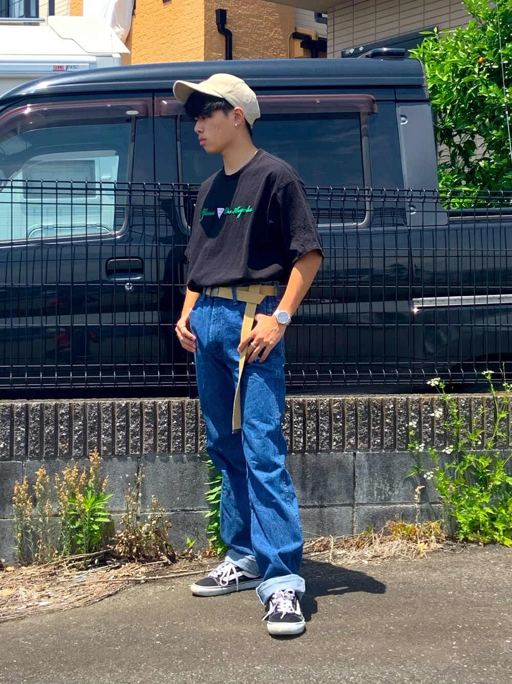 YUTA 【相互】のスニーカー「VANS ヴァンズ OLD SKOOL オールドスクール VN-0D3HY28 BLACK」を使ったコーディネート
