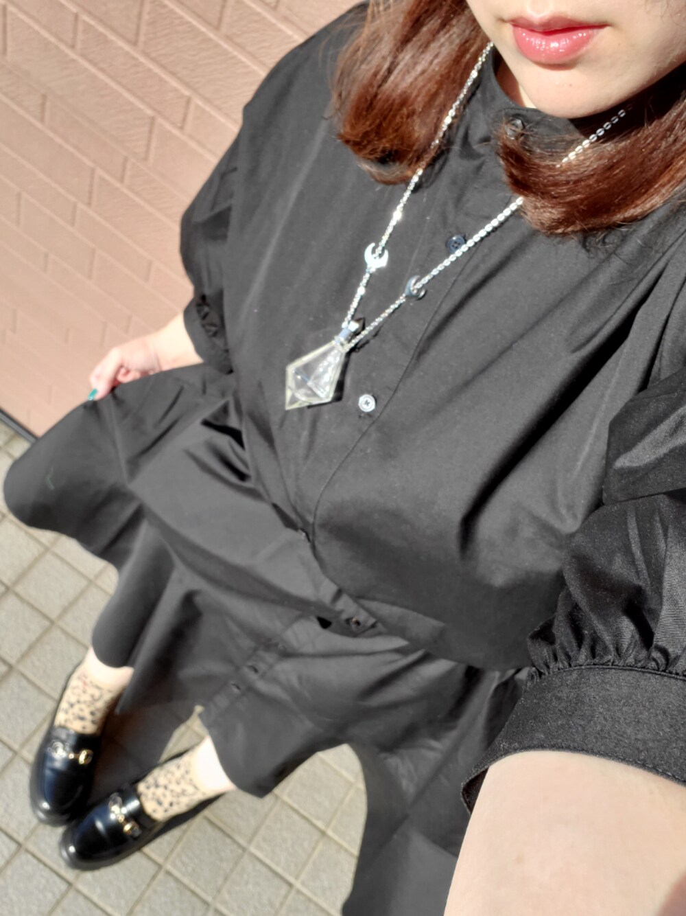 シャツワンピースが思ったより長くて、ベルトして丈調整してます😂 今日は暖かくてワンピ一枚でも大丈夫でした✨