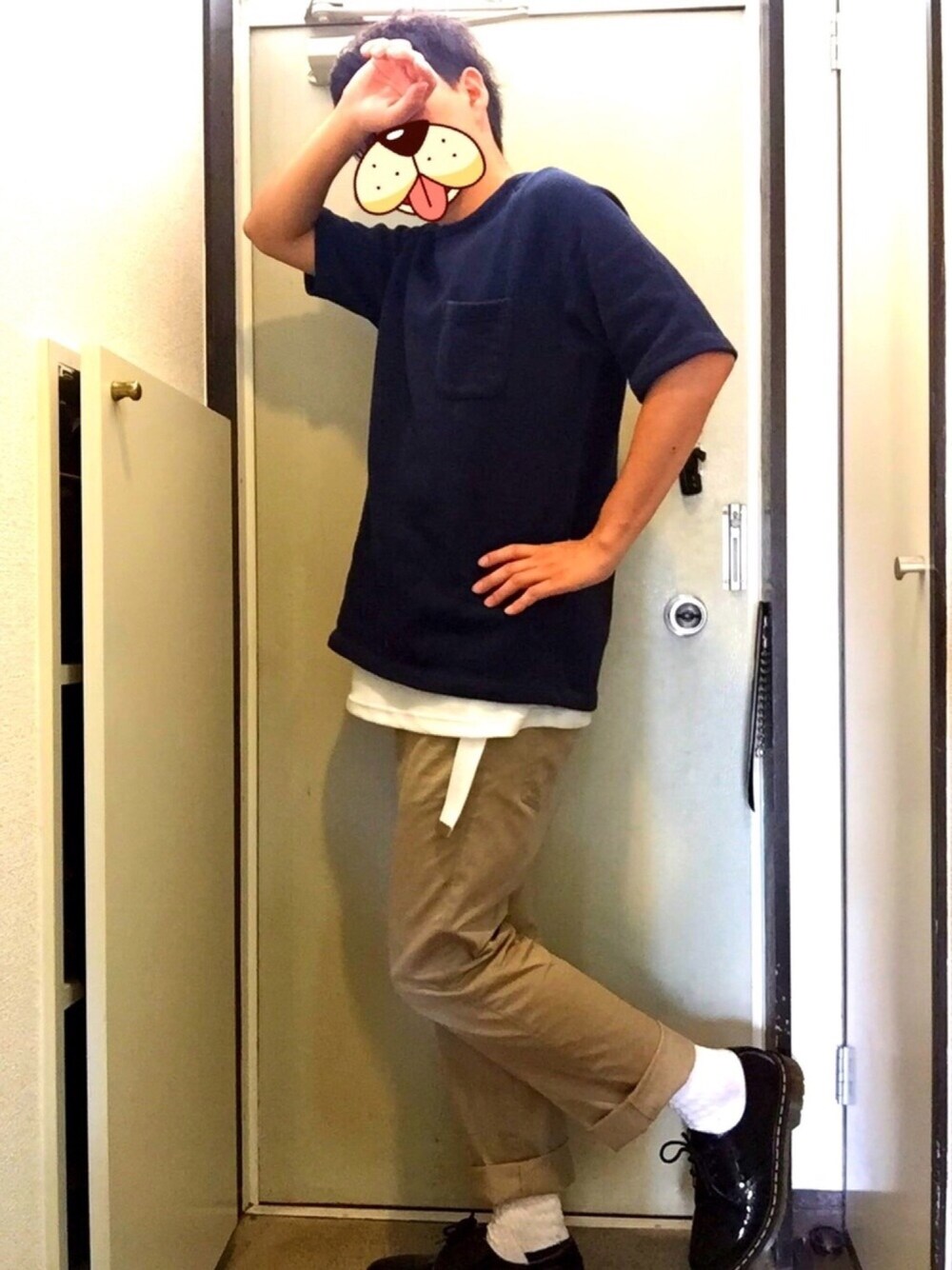 やっと待望のドクターマーチンを買いました!!!! やったぜ! 履きまくるぜ!!!! そしてこの前古着屋行った時にかった謎の青いトップスを着てみました!! これはどこのブランドなんだろう。。。 多分ノーブランドです笑 チノパンも久しぶりに履いてみました!! チノパンは大学生から履きまくってたから膝の部分のすり減り方がハンパねぇ。。。 新しいのを買う必要があるな。。。笑