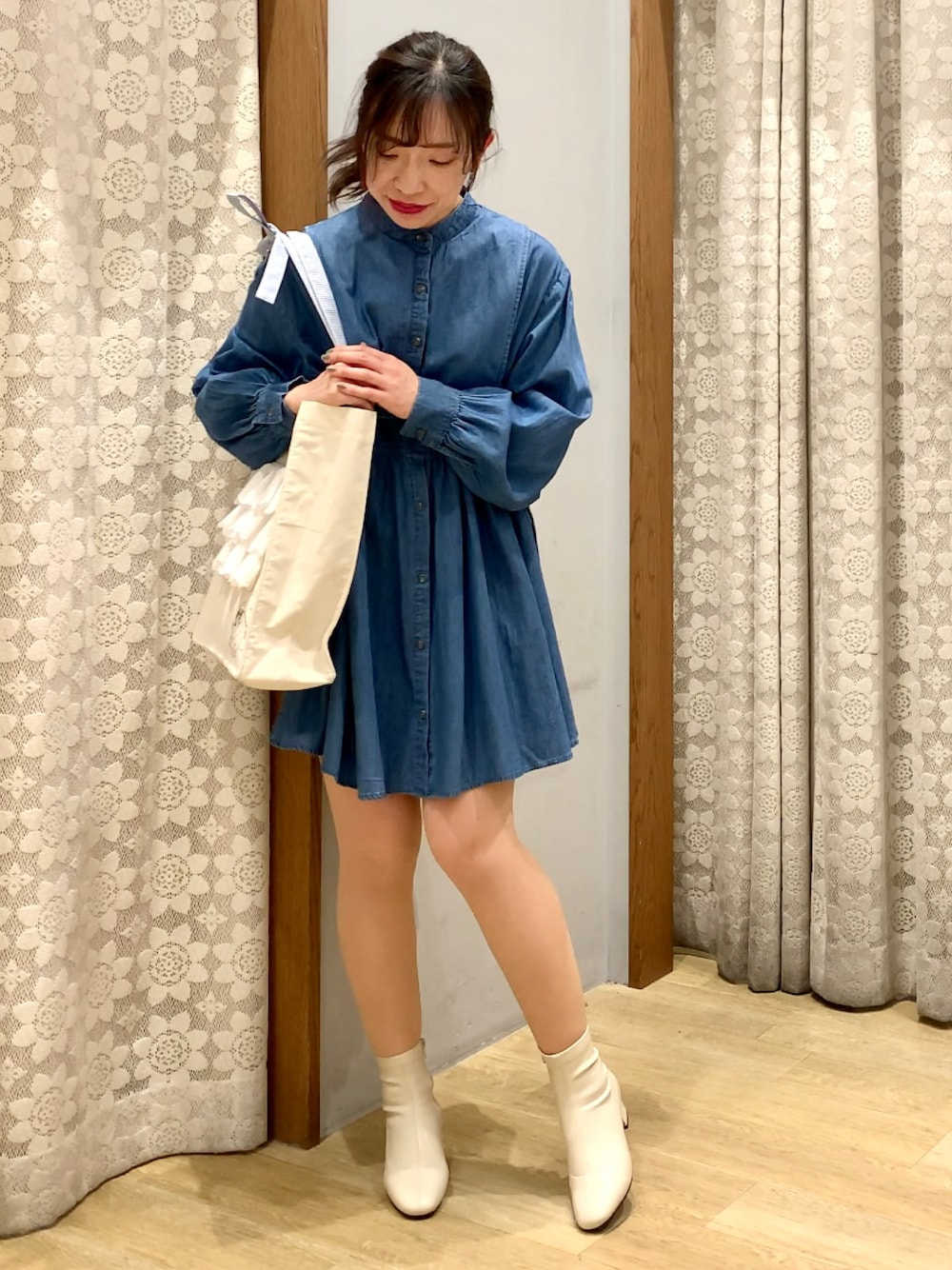 yuuuboooのトートバッグ「ナナ/リボンハンドルトートバッグ」を使ったコーディネート