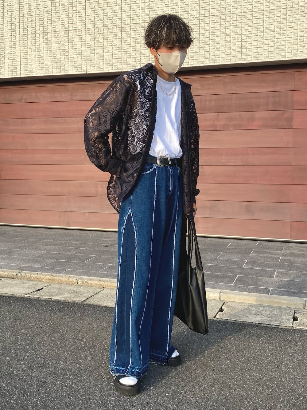 【レースシャツ×デザインデニム】 黄金配色で組む時は一癖あるアイテムにして差別化!