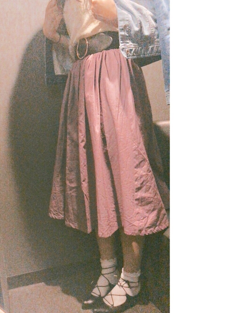 通販で買った紫のロングスカートがお気に入り♡ 春になって暖かくなってきたので Gジャンの青みだけで少し涼しげに…