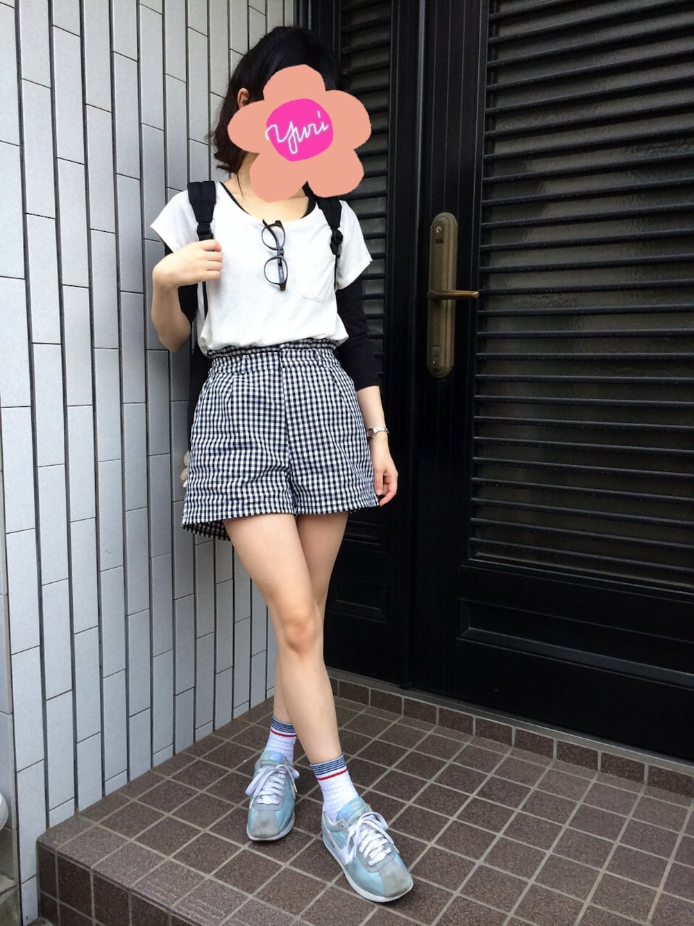 y u r i *のチノパンツ「ギンガムハイウエストショーツ」を使ったコーディネート