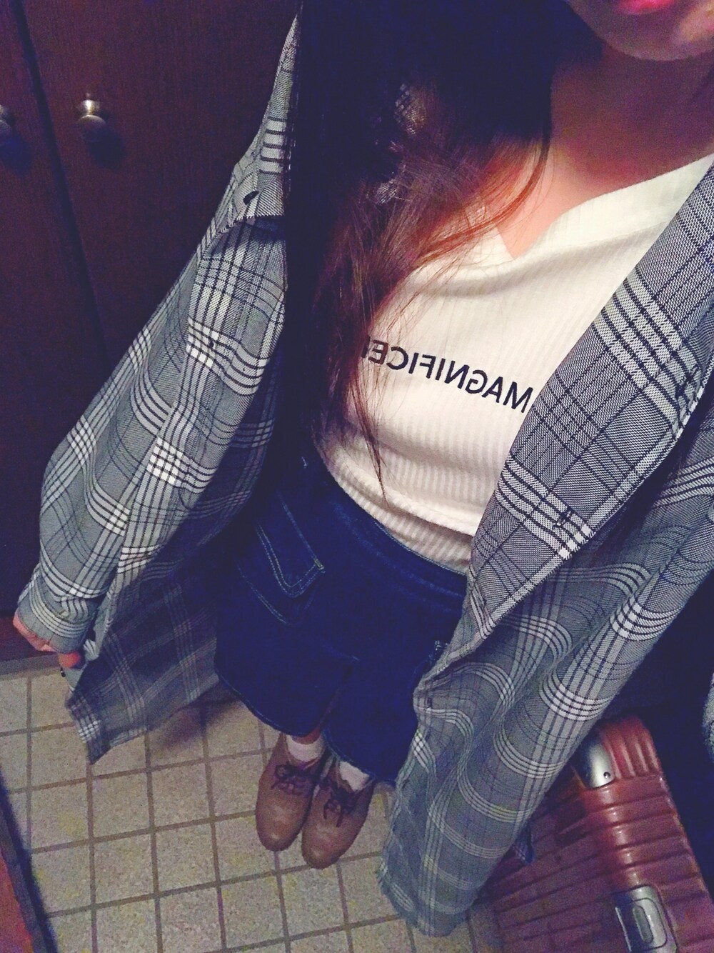 チェックのロングシャツが可愛くて丈も丁度良くてお気に入りです(´..・ω・..`)♡ あと2日頑張ればGWだ〜!!!