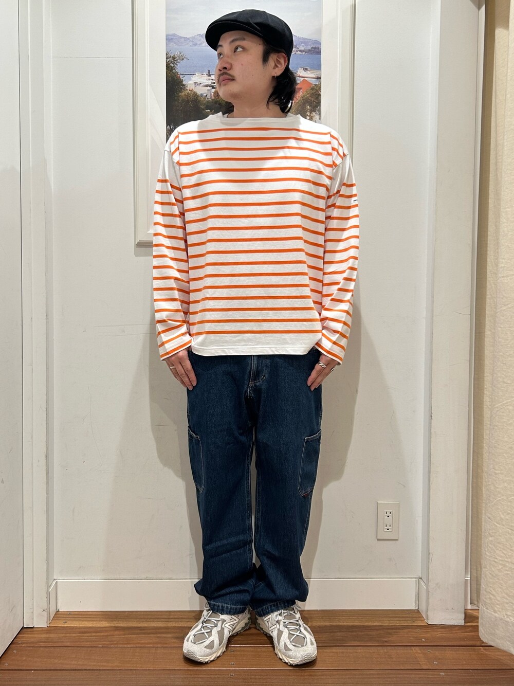 本日のスタイリング!! 春にピッタリな色味がいい感じのボーダーロンTを着用したコーディネート!