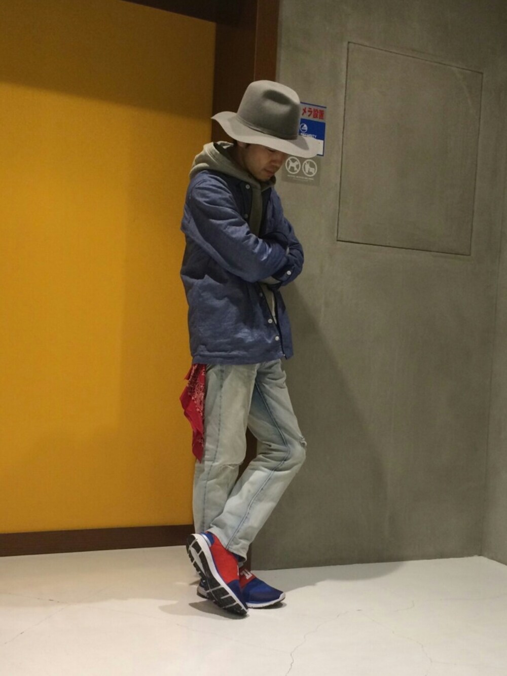グレー&ブルー。 グランジ&スポーツ。 赤が差し色。