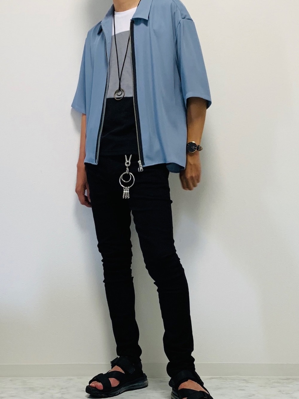 ♣️YUYA♣️のシャツ/ブラウス「【STUDIOUS】ビッグシルエットアクセントジップハーフスリーブシャツ【ZOZO限定アイテム】」を使ったコーディネート