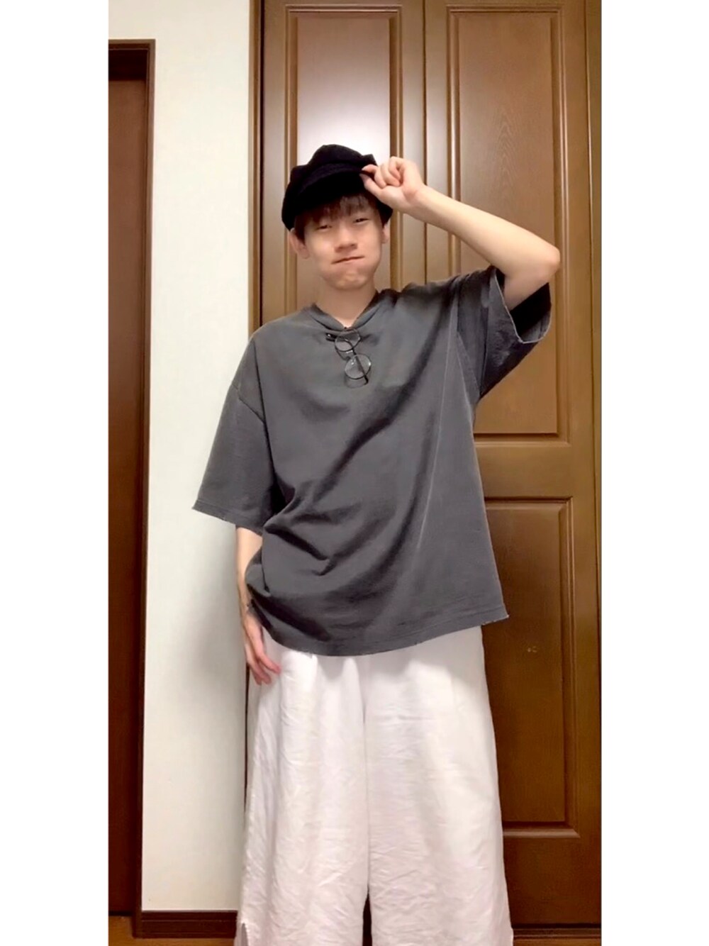 悠弥(ゆう)のパンツ「麻混ワイドパンツ」を使ったコーディネート