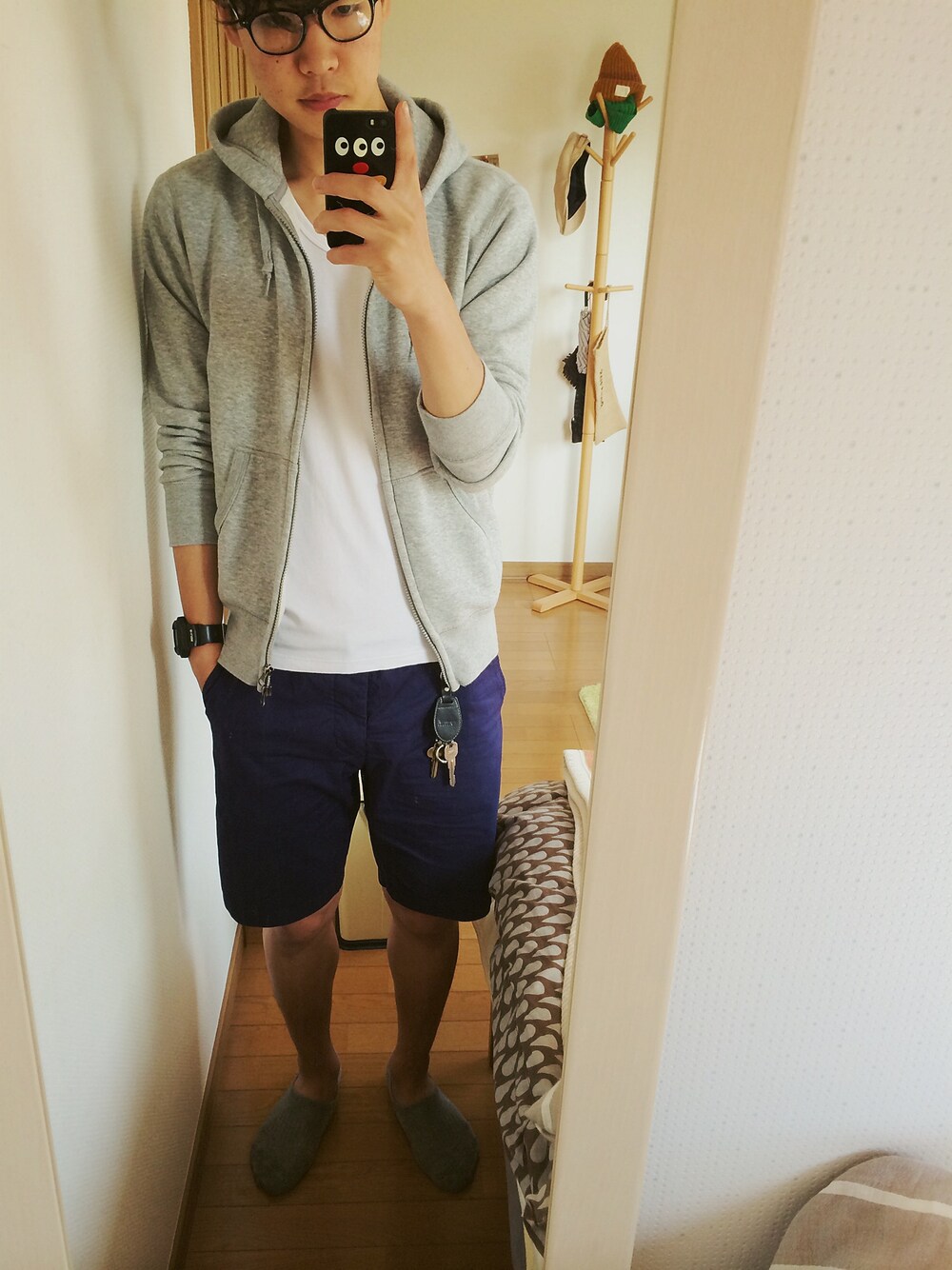 旬のネイビー×グレー×白です♪ 最近教室クーラーきついから パーカー羽織っときます‼︎ 外は最低とても暑くて 溶けそうです(´・_・`)