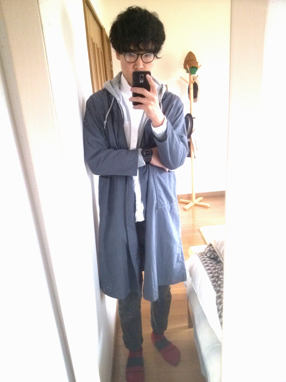 ちょーしんのステンカラーコート「ショップコート」を使ったコーディネート