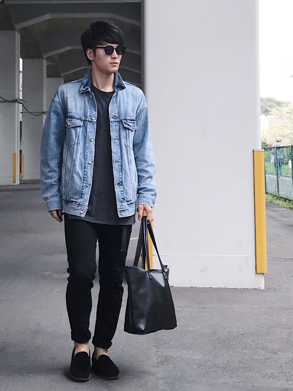 黒ベースのスタイルにデニムジャケットをラフに羽織りました! サングラスはADSRの物、少し他と違ったデザインがありお気に入りです!