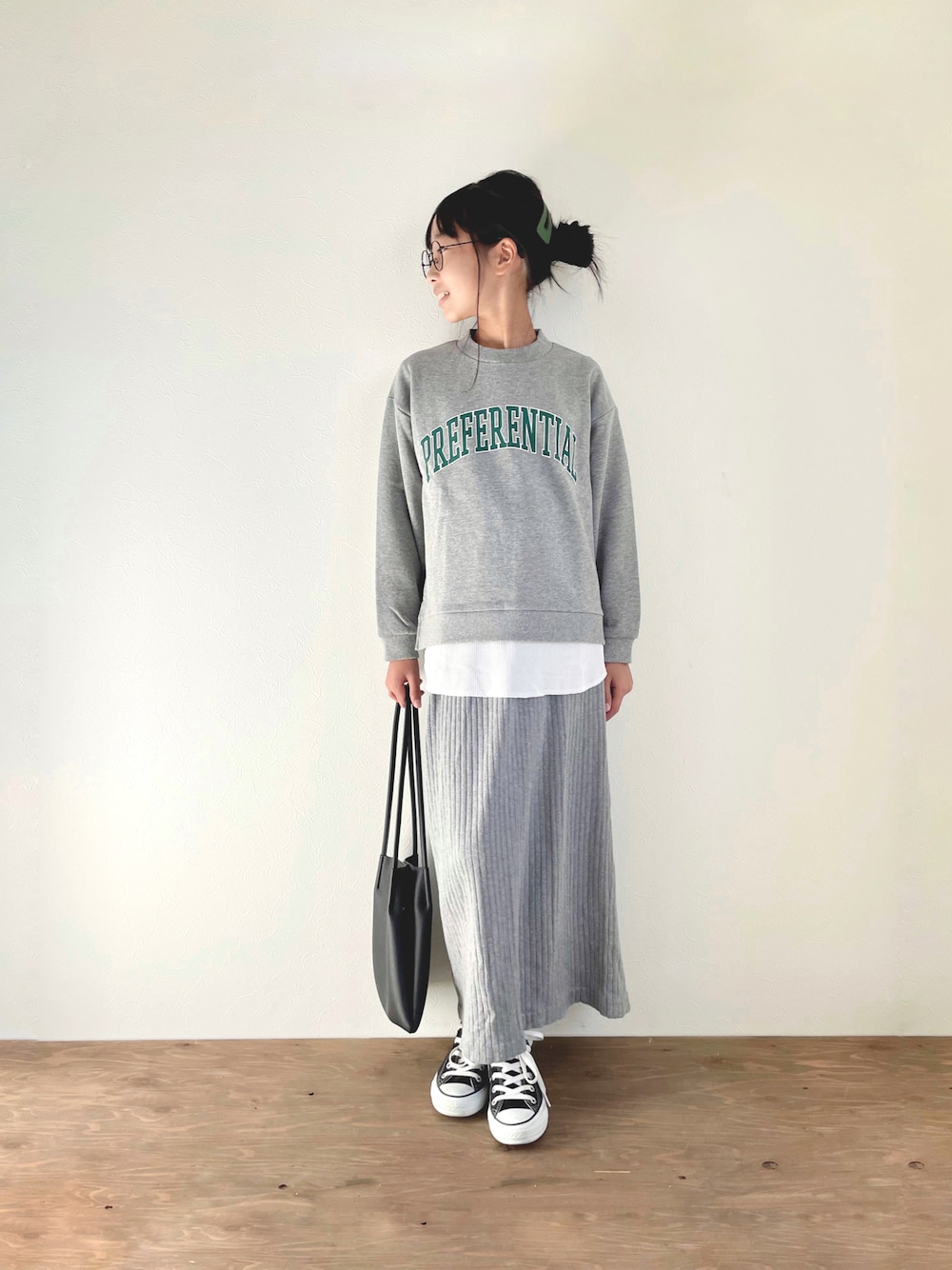 レイヤード風スウェット♡ @ciaopanictypy 重ね着風は さっと着てオシャレだからすき◡̈* カレッジプリントで 思いっきりカジュアルコーデ♡