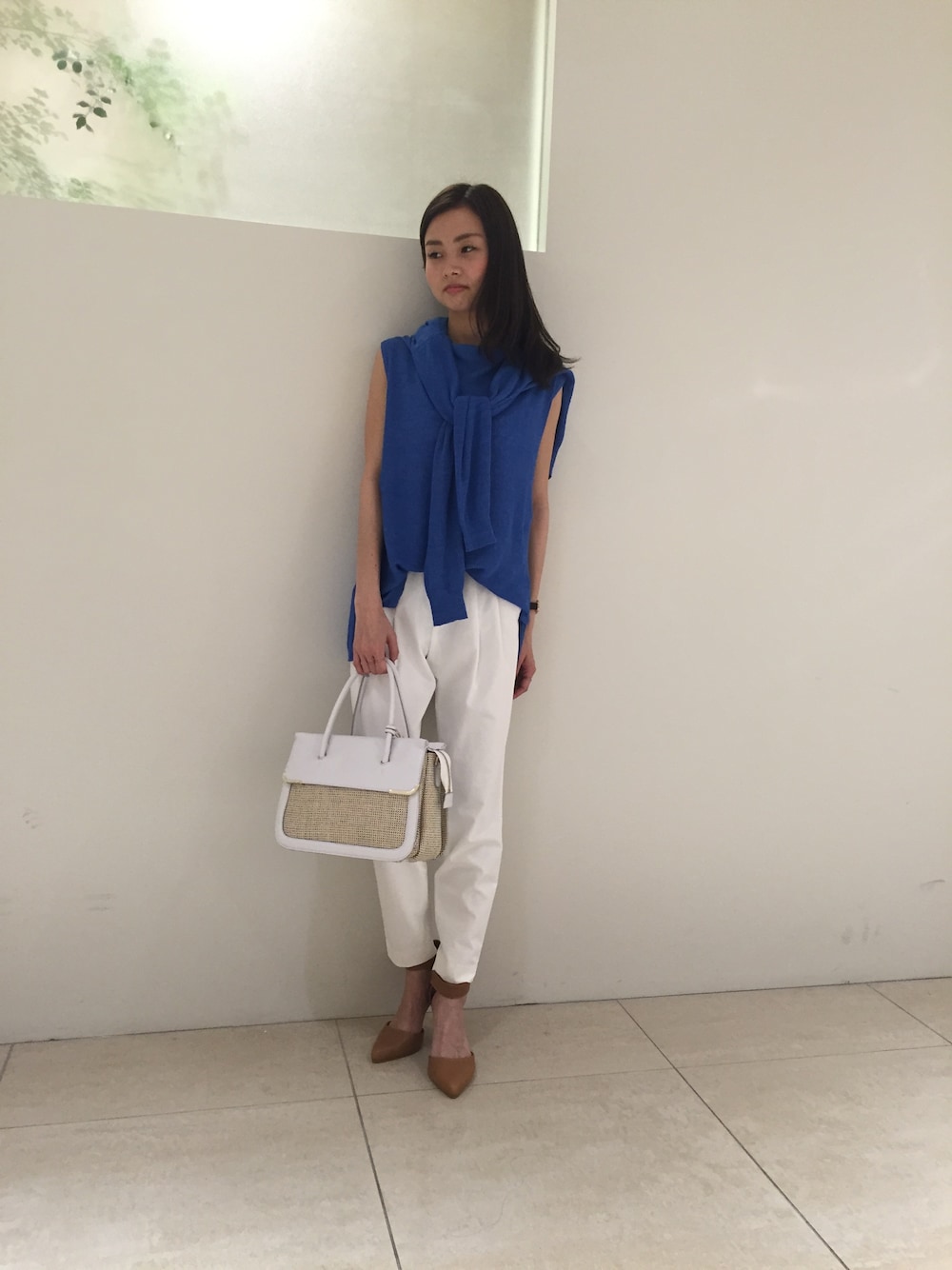 ビビッとなブルーにホワイトパンツを合わせた爽やかコーデ☆