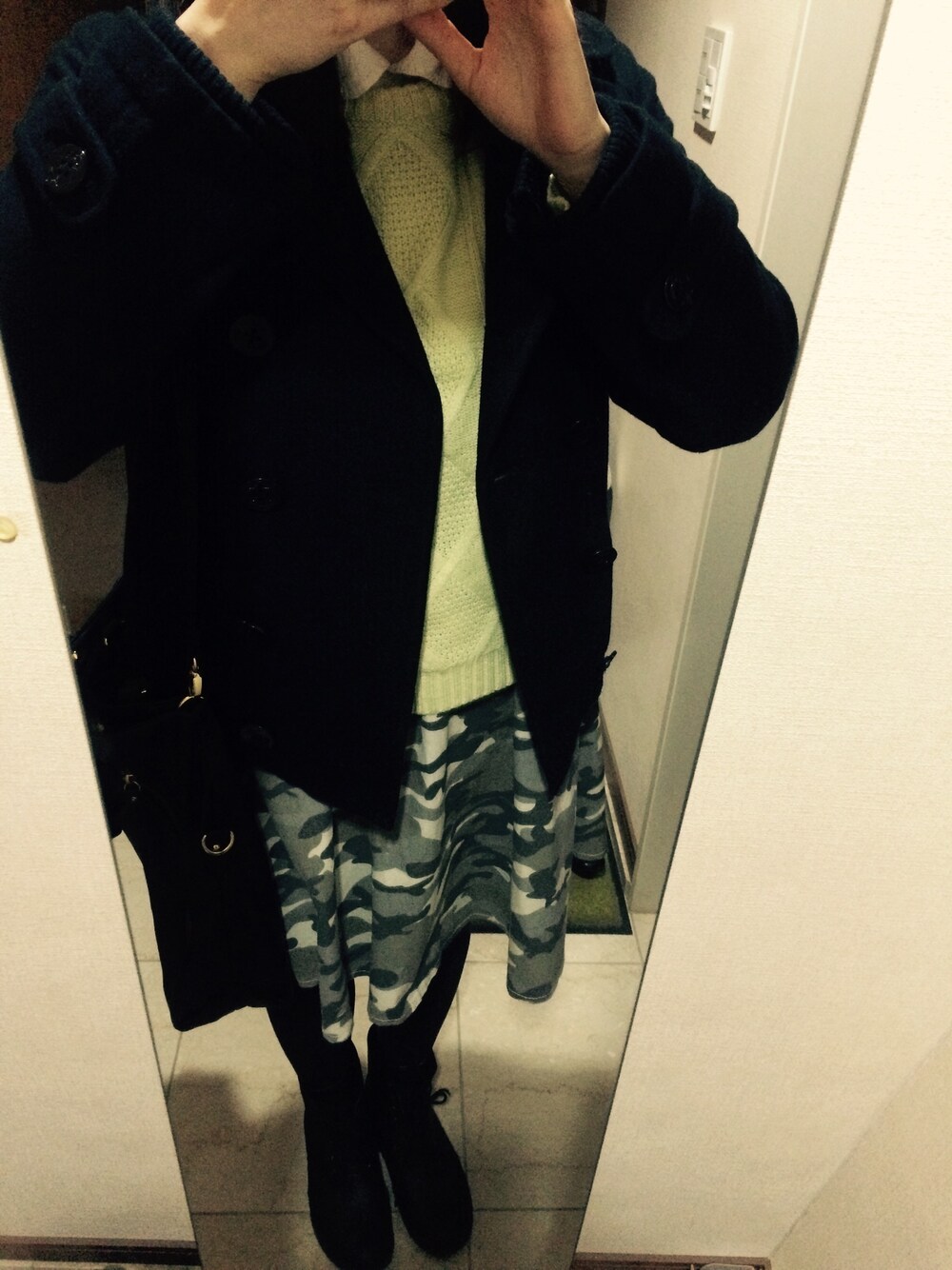 コート○earth music&ecology シャツ○PAGEBOY ニット○GU バック○oneway 高橋愛ちゃんと色違いのおそろいスカート*