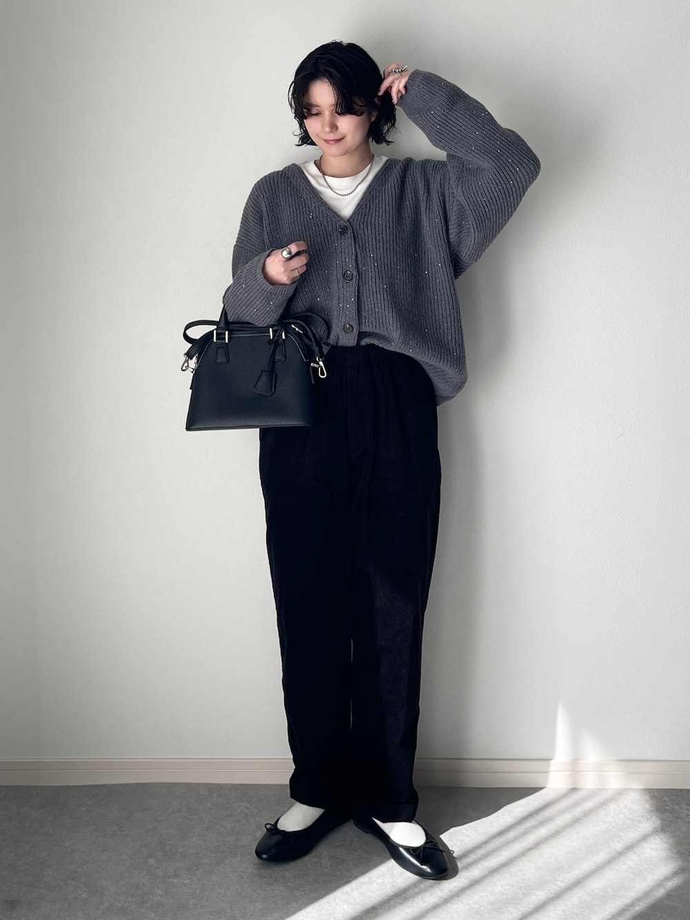 スパンコールがかわいいカーディガンに 秋冬っぽくコーデュロイパンツ🐻❄️ シンプルだけど素材にこだわって作るコーデ すごく好き。 ┈┈┈┈┈┈┈┈┈┈ 本日もご覧いただきありがとうございます🧁🤍 Instagram @_yuzu024