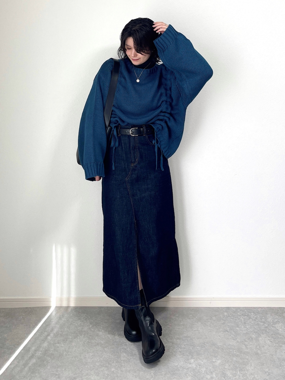 ゆ ず も も .のニット/セーター「フロントドロストニットプルオーバー」を使ったコーディネート