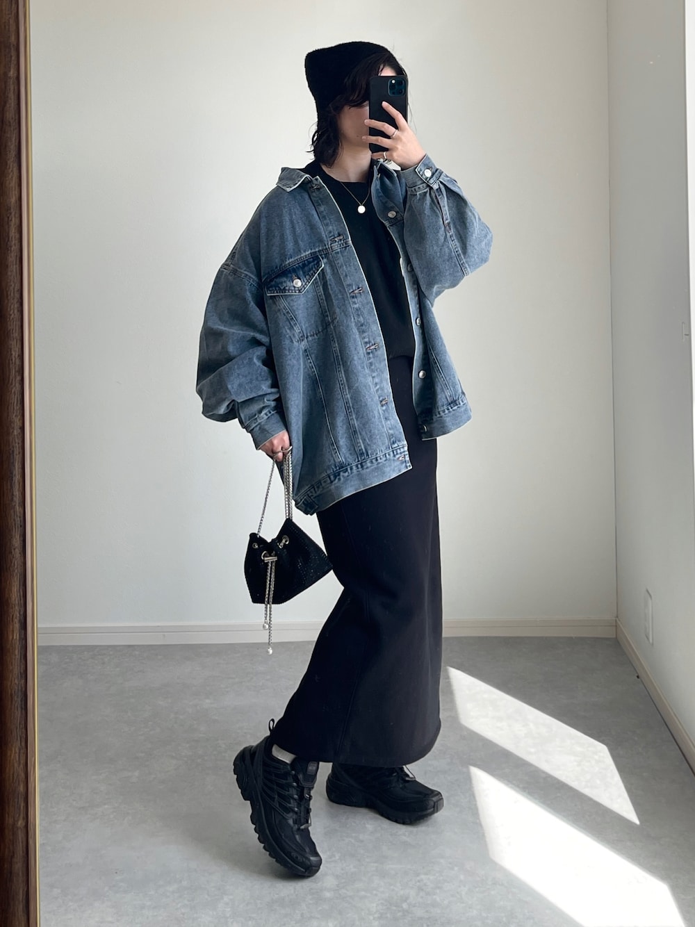 ゆ ず も も .のショルダーバッグ「パール&チェーンギャザーショルダーバッグ」を使ったコーディネート