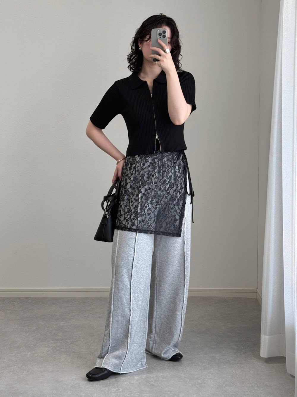 コンパクトなトップスの分、パンツでゆるっと! トップスとパンツは¥1,000オフクーポン出ております✨