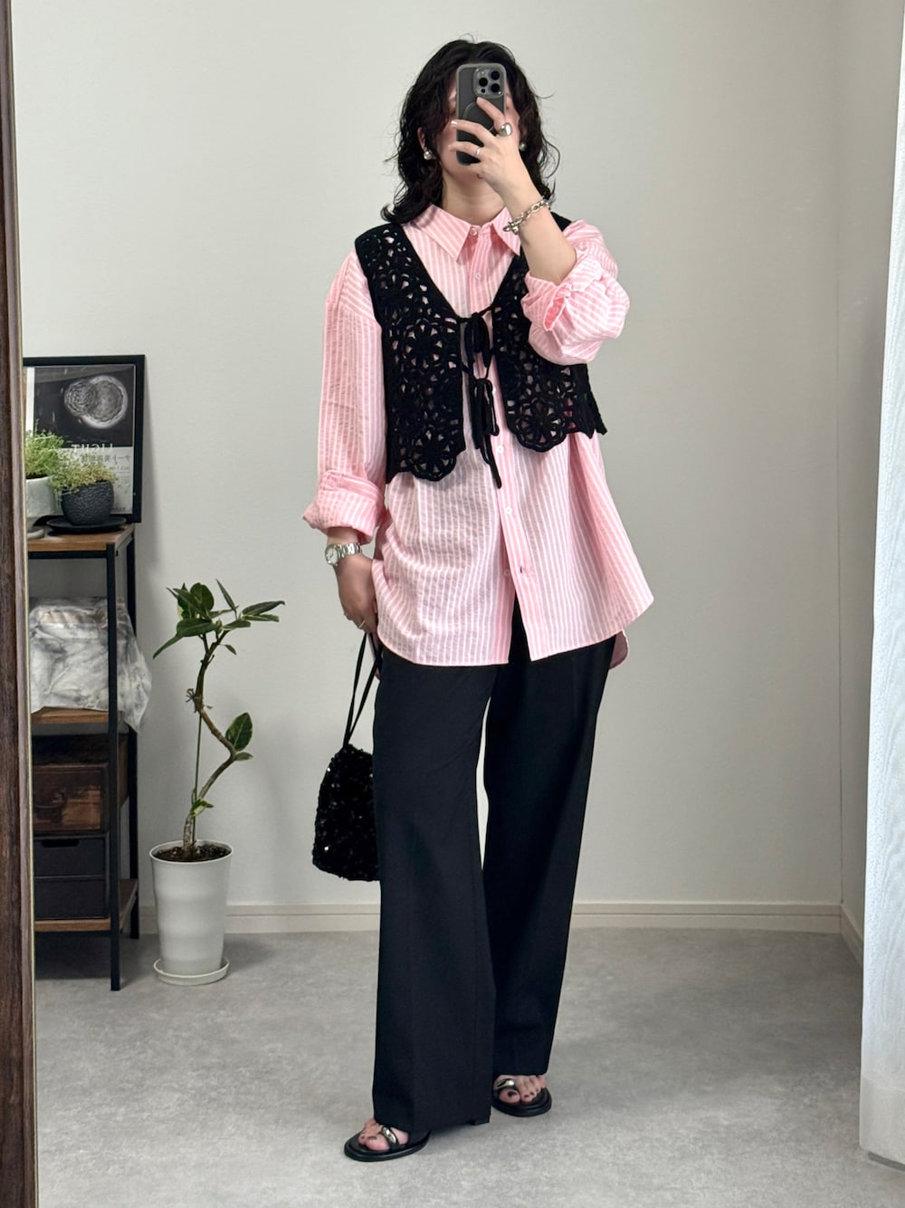 今季ずっと気になっていたピンクのシャツ☺️💞 かわいい〜〜シワが気にならない生地なのも嬉しい!