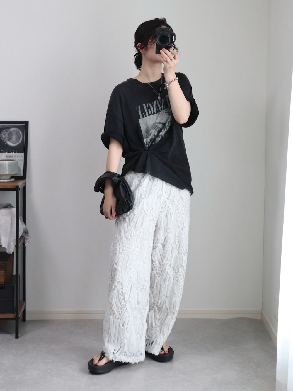 普通のTシャツでも輪ゴム一本で別の服のようにアレンジできるよ!詳しくは動画欄へ💁🏼♀️ このコーデのお気に入りポイントは 履くだけでおしゃれに見えるパンツ⚪️ 裏地もちゃんとついていて安心だよ〜! 生地はしっかりしてるから秋冬も全然履ける🍁 今日も見てくれてありがとうございます🫶🏻