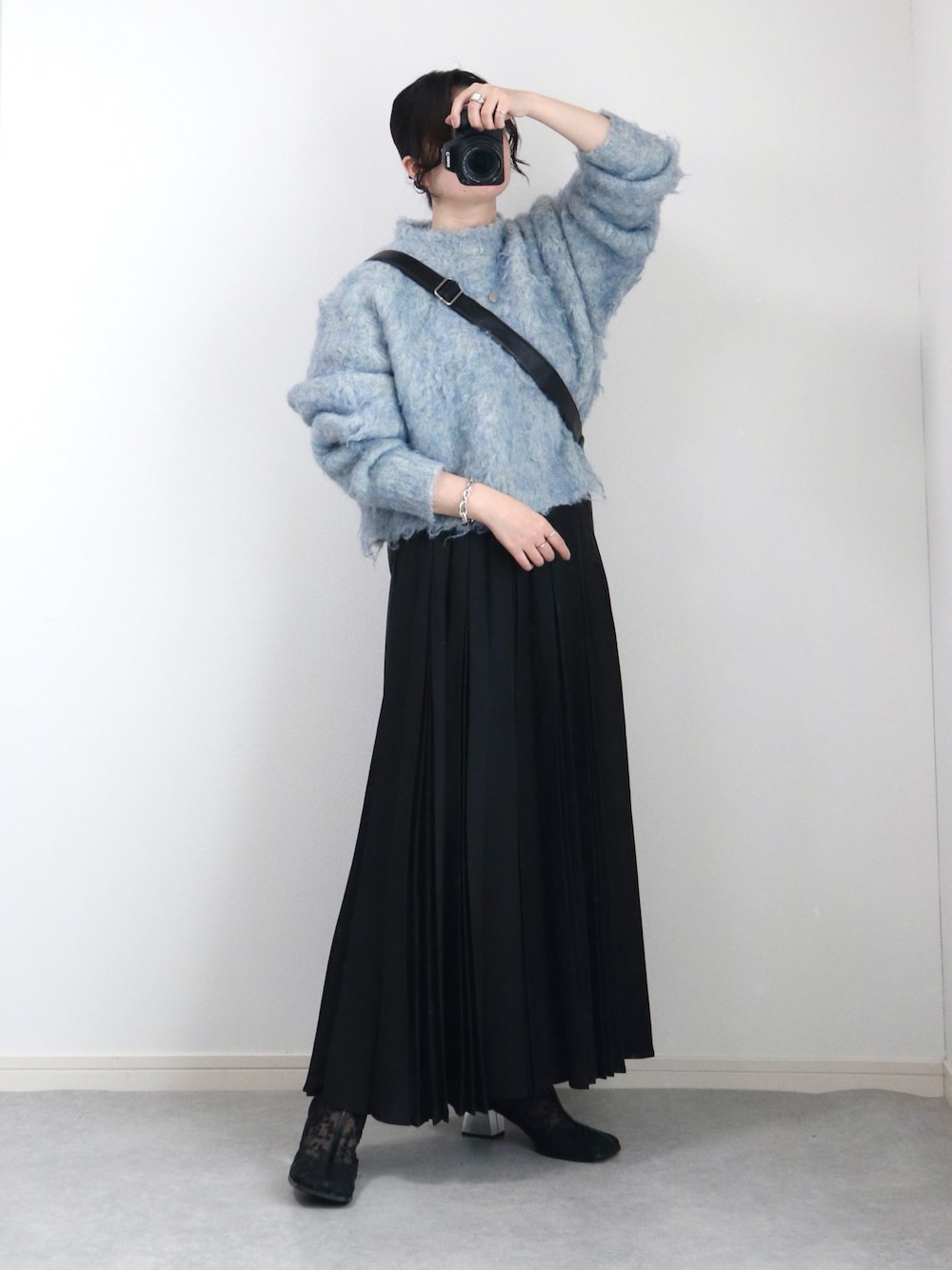 ゆ ず も も .のニット/セーター「【NOGLE/ノグル】MIXシャギーボリュームショートニット」を使ったコーディネート