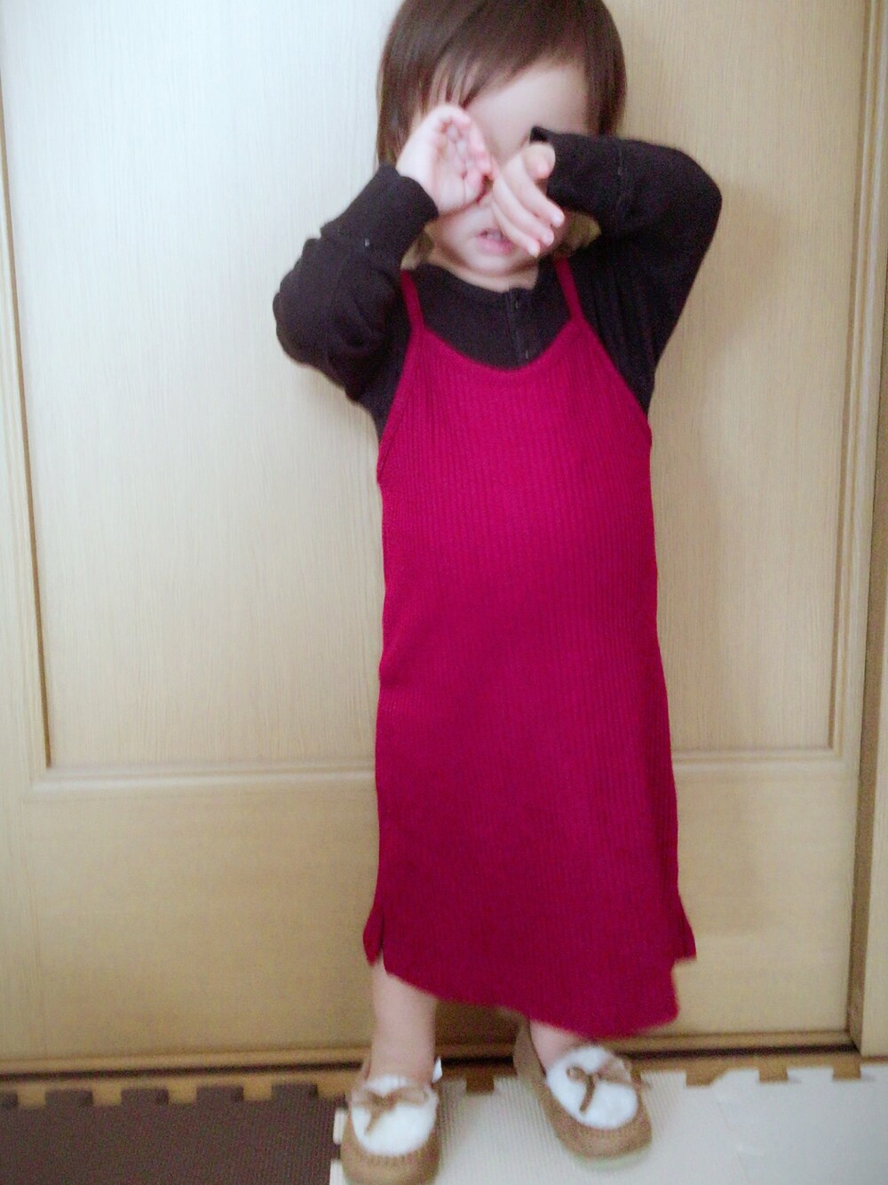 こんにちは😊 いいね♥セーブありがとうございます(;_;)♡ 今日は届いた キャミワンピを 着せてみました\♡/ お腹のぽっこり目立っちゃうけど笑 色違いほしくなっちゃうやつー笑!!