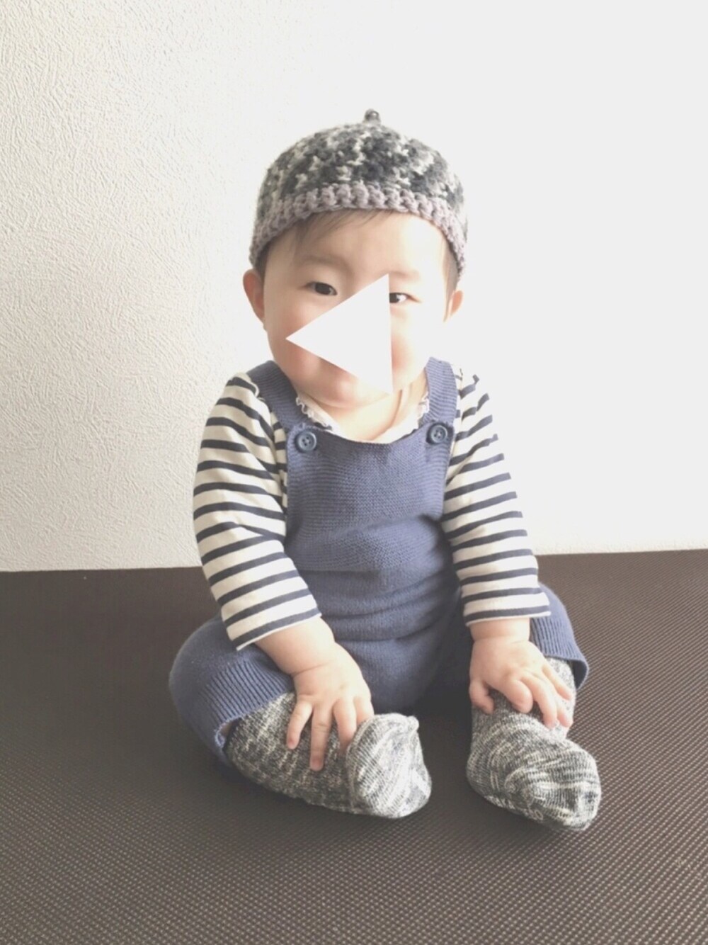 撤退直前にオールドネイビーで買ったお気に入りのニットサロペット◡̎⃝ でもサイズが3-6Mだからピチピチ…;