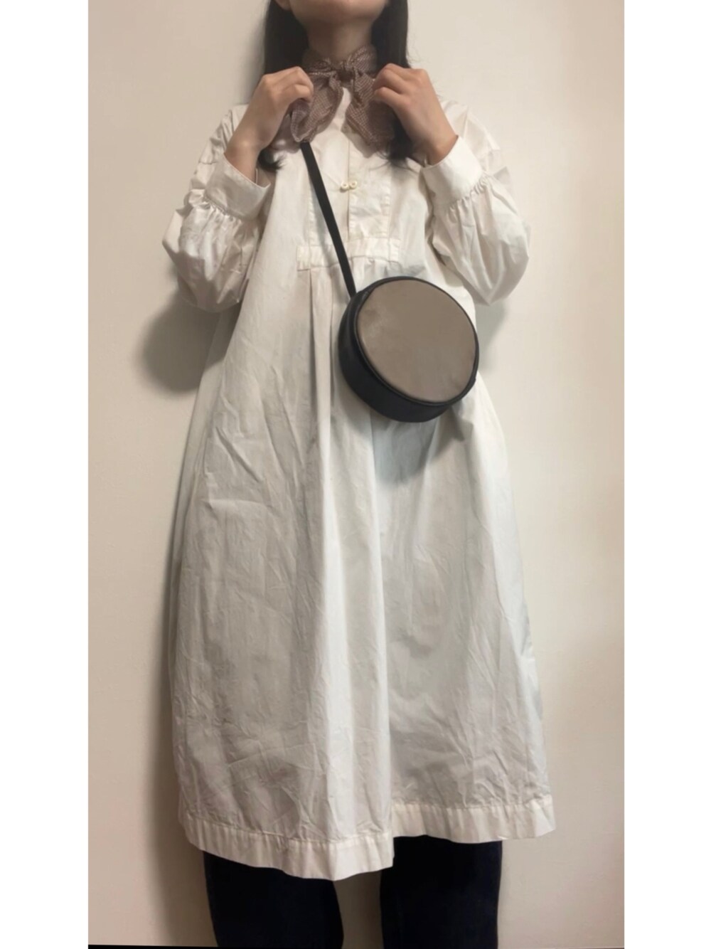 ドット柄のストールがポイントの、 春のワンピースコーデ。