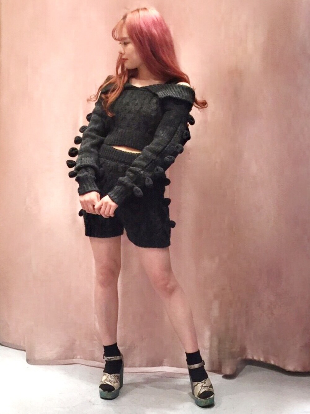 ゆずのニット/セーター「オフショルヴィンテージケーブルニット」を使ったコーディネート